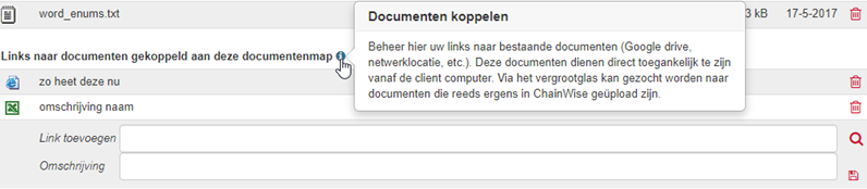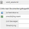 Met instelling 955 kunt u document links in documentenmappen gebruiken. Nu is het ook mogelijk om een omschrijving toe te voegen die wordt weergegeven in de documentenlijst. Als er geen omschrijving wordt ingevuld dan blijft alleen de link zichtbaar.
